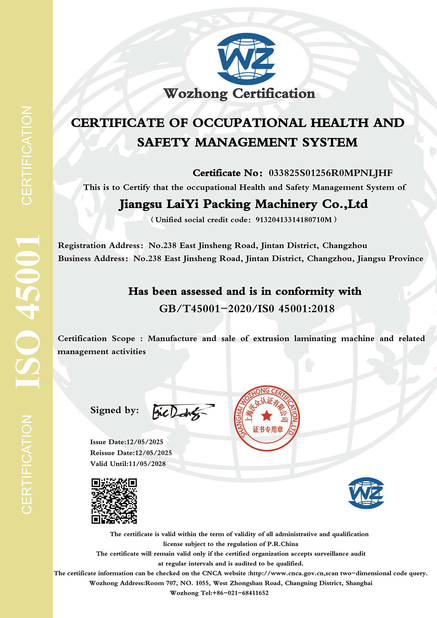 Estándar:CERTIFICATE OF OCCUPATIONAL HEALTH ANDSAFETY MANAGEMENT SYSTEM Número:033825S01256ROMPNLHF Fecha de emisión:2025-05-12 Fecha de expiración:2028-05-11