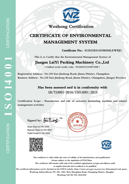 CERTIFICATE OF ENVIRONMENTAL MANAGEMENT SYSTEM